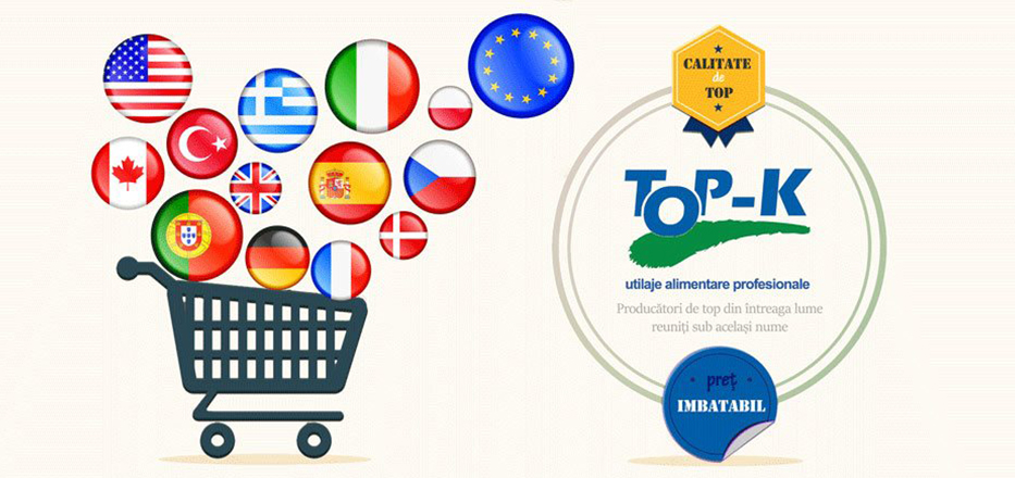 TOPK comercializeaza o gama variata de echipamente profesionale pentru domeniul alimentar. Cu o experienta de 24 ani in domeniu, firma ofera solutii complete de echipare pentru restaurante, catering, fast-food, baruri, cafenele, pizzerii, covrigarii, cofetarii, patiserii, gelaterii, brutarii, supermarket-uri,