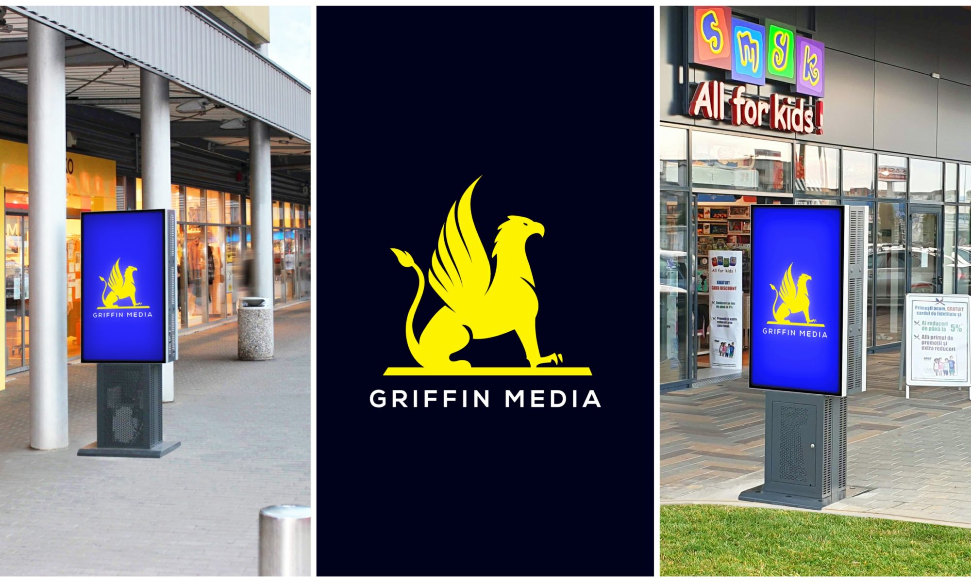 Compania Griffin Media este un start-up înființat la sfarsitul lui 2021 și este deja prezentă în mai multe orașe din România, investind cu prioritate în panouri publicitare digitale amplasate în centre comerciale alăturate Lidl și Kaufland. Pe lângă locația excelentă, punctele forte ale companiei sunt calitatea serviciilor oferite, costul redus și faptul că este un business verde, prietenos cu mediul.